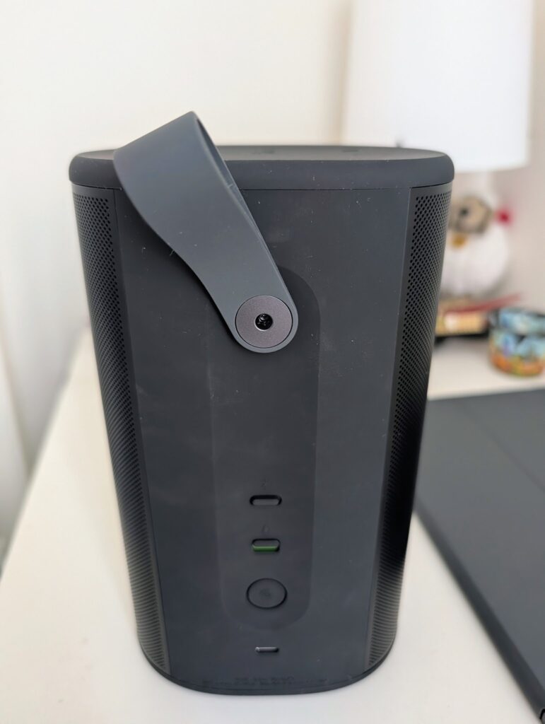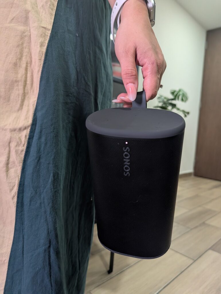 Es una bocina robusta,elegante y,sobre todo,incansable. Se ha convertido en mi compañera de vida diaria: del buró al jardín,del comedor al baño,siempre lista y siempre con batería de sobra.